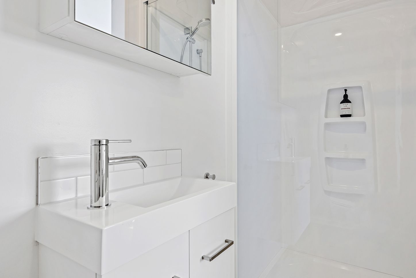 Inside, a calm, light-filled interior balances warmth and efficiency. Natural timber textures, crisp white finishes, and soft light combine to create a feeling of openness. The ground floor connects seamlessly from kitchen to living to outdoor courtyard, making the home feel larger than its footprint. Upstairs, well-proportioned bedrooms capture light through thoughtfully placed windows, including skylights that bring in all-day sun.