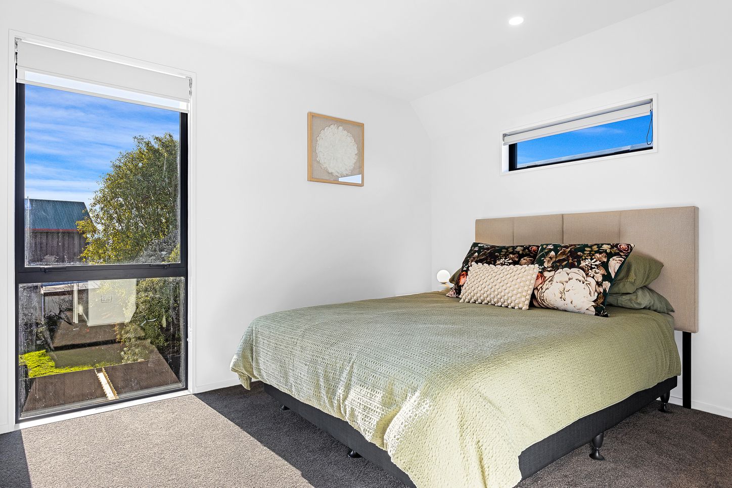 The black vertical metal cladding gives the exterior a striking, architectural presence, contrasting beautifully with the adjoining white weatherboard form. A steep gable and minimal detailing create a distinctly modern silhouette, while clever material use ensures durability and low maintenance — perfect for urban living.