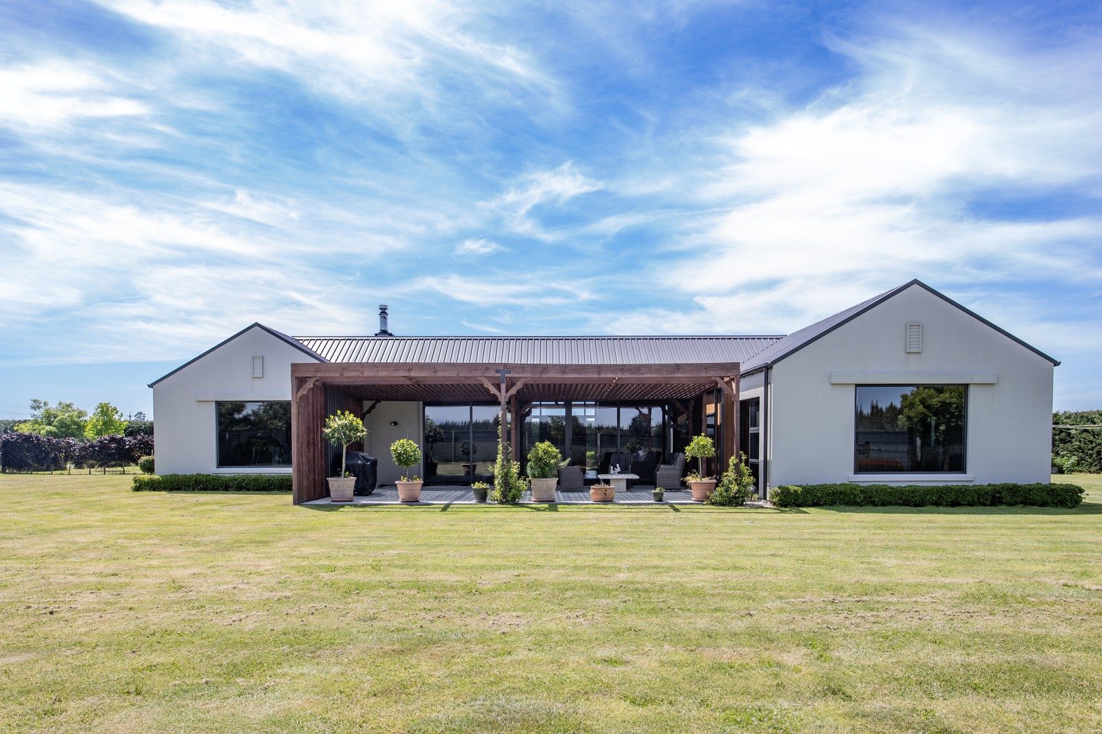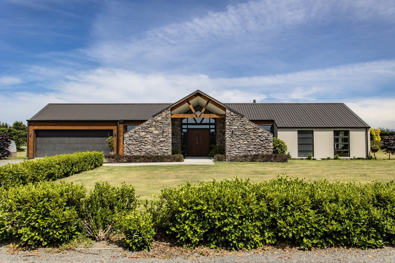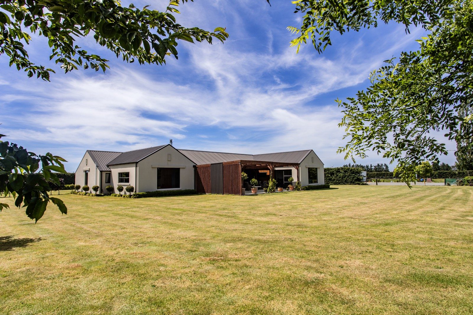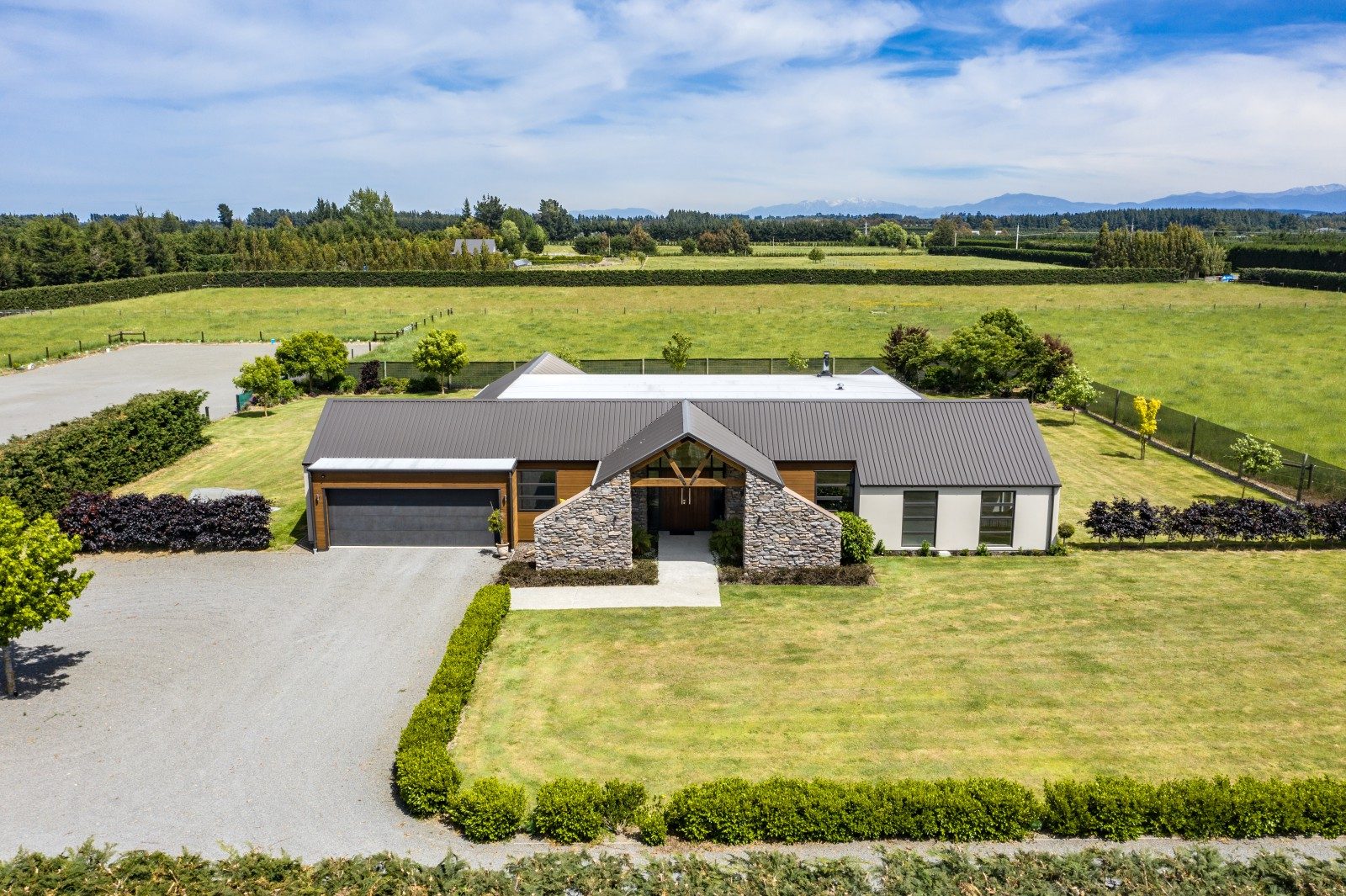 Set among farmland in Rangiora, this striking home captures the essence of rural living — bold in form, refined in finish, and beautifully connected to its landscape.